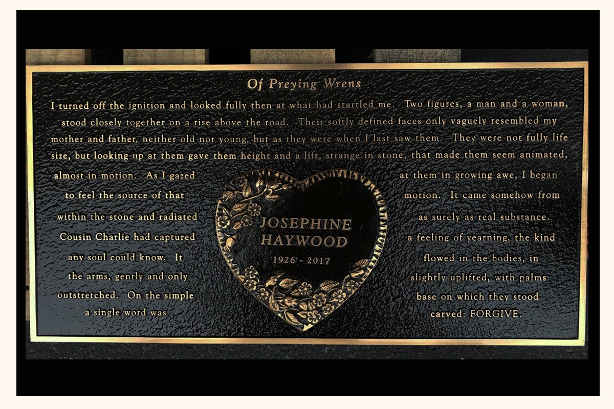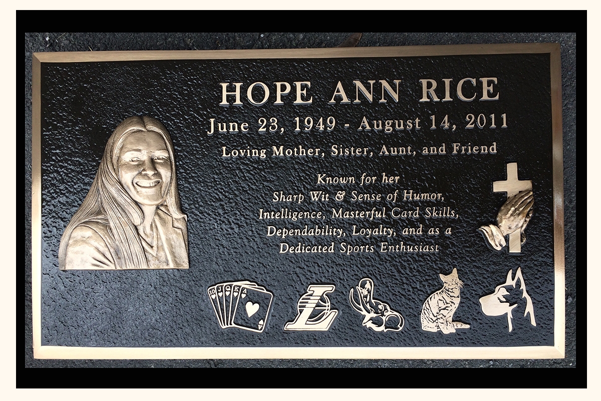 If you are interested in creating a custom bronze grave marker for your loved one, the best thing to do is call our office and speak with Char. She will work with you and put together a free layout based on your ideas and desires.