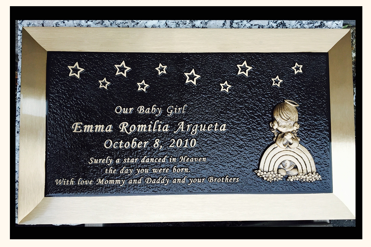 If you are interested in creating a custom bronze grave marker for your loved one, the best thing to do is call our office and speak with Char. She will work with you and put together a free layout based on your ideas and desires.