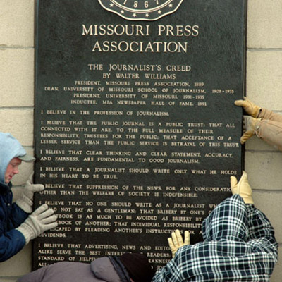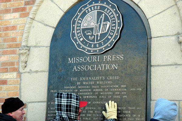 This plaque was not only created in dedication to the Missouri Press Association but also as a memorial of The Journalist’s Creed. The Journalist’s Creed is a code of ethics written around 1906 by Walter Williams. It was written to dictate the ideals and moral statutes of true journalism.